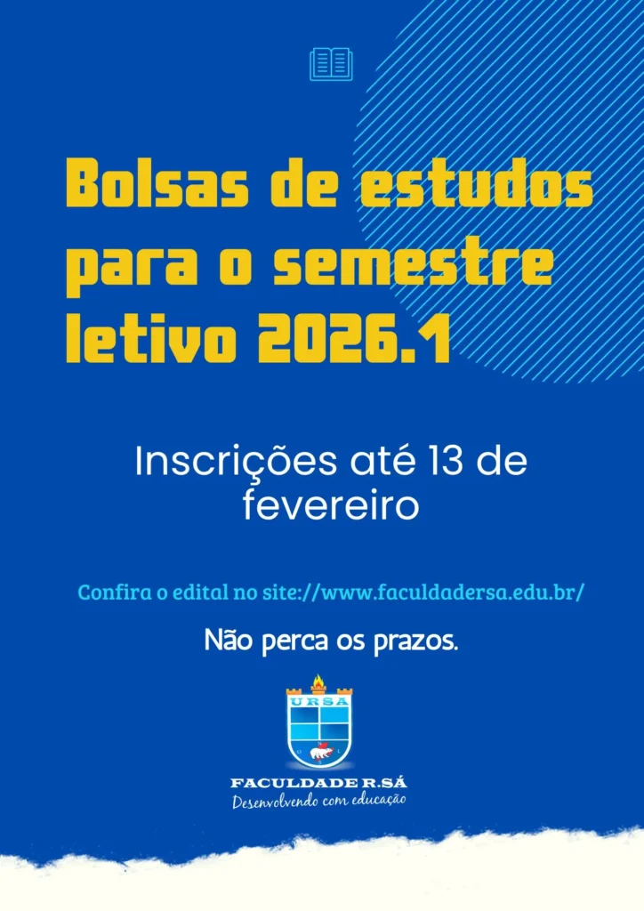 Faculdade R. Sá abre edital de bolsas de estudo para o semestre 2026.1