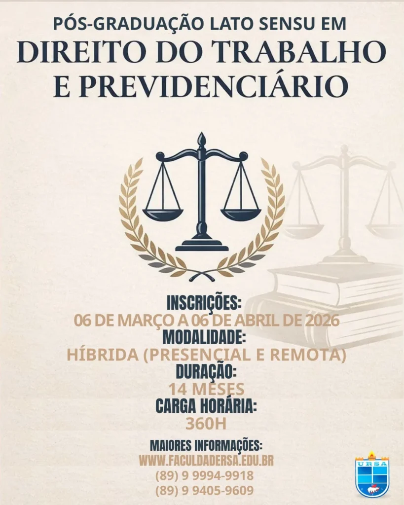 A especialização representa uma oportunidade para profissionais que desejam aprofundar conhecimentos, atualizar-se nas áreas trabalhista e previdenciária e fortalecer a atuação profissional em um campo essencial do Direito.