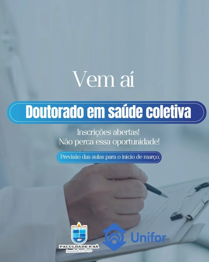 Estão abertas as inscrições para o Processo Seletivo do Doutorado Interinstitucional (DINTER) em Saúde Coletiva, uma parceria entre o Instituto de Educação Superior Raimundo Sá (IESRSA) e a Universidade de Fortaleza (UNIFOR). O curso é reconhecido