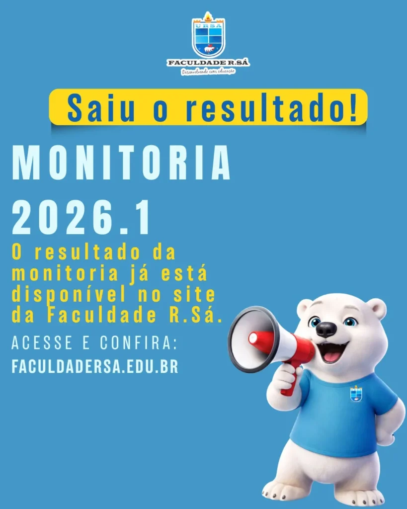 A Faculdade R.Sá parabeniza todos os acadêmicos que se inscreveram e participaram do processo. Para verificar o resultado completo.